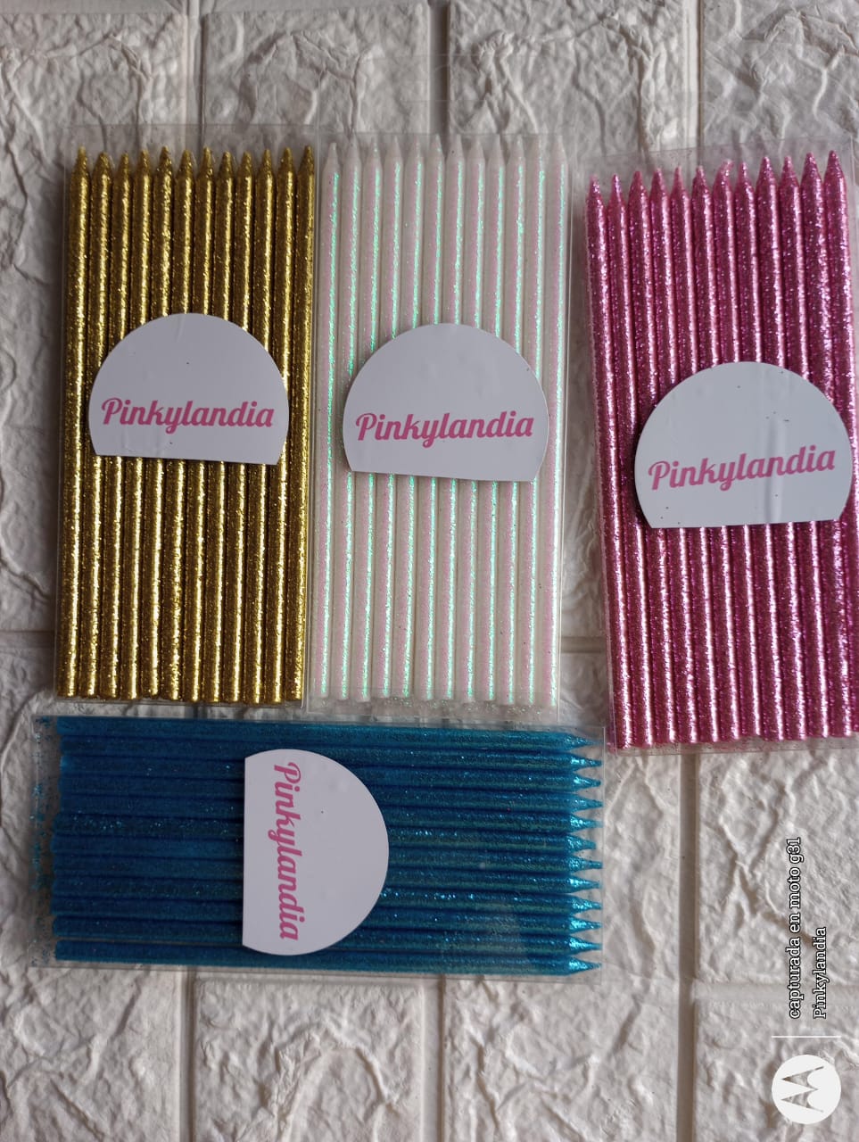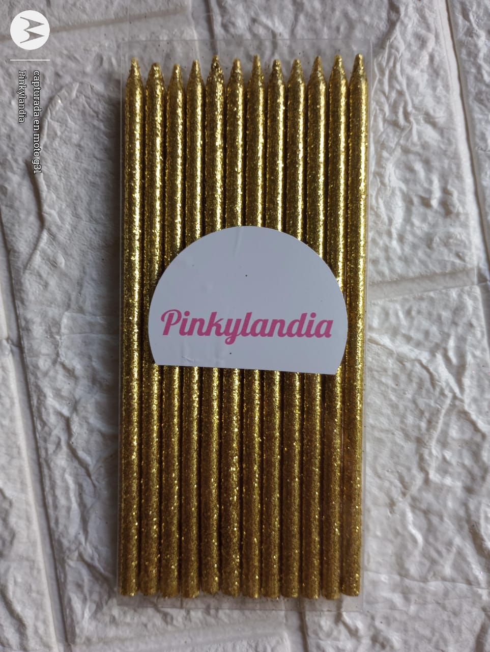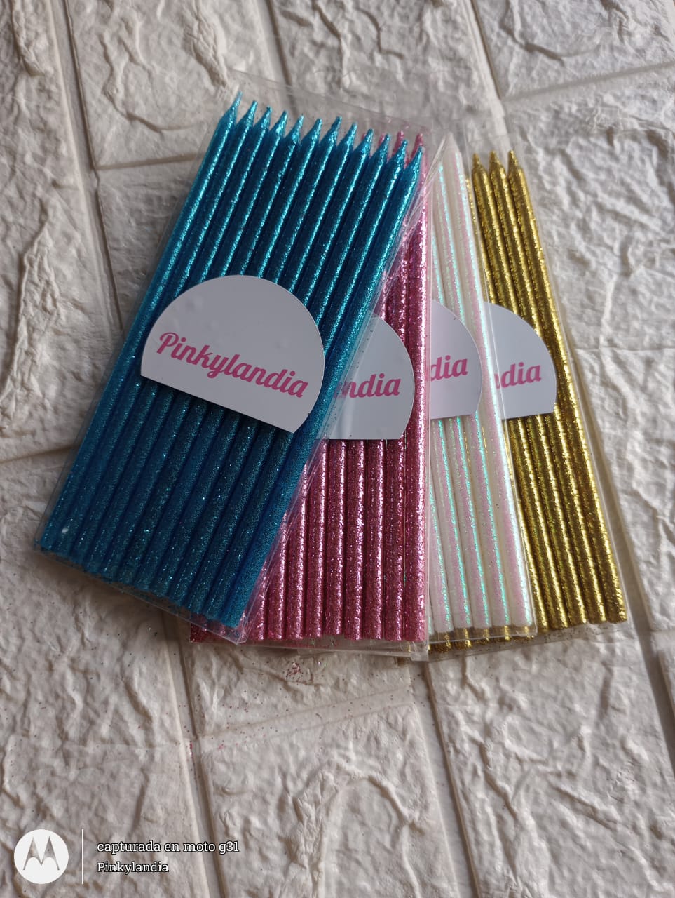 Pack Velas Finitas Glitter Largas Torta x12 Unidades COTILLON DECORACION