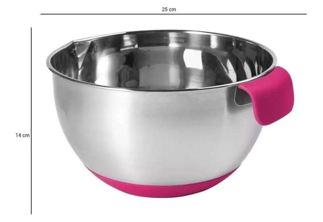 Este bolw es de acero inoxidable, lo que lo hace resistente y duradero, garantizando un uso prolongado. Su base es de siliocna antideslizante lo que asegura una gran estabilidad durante su uso, evitando derrames y accidentes. No incluye tapa, es de fácil uso y limpieza.