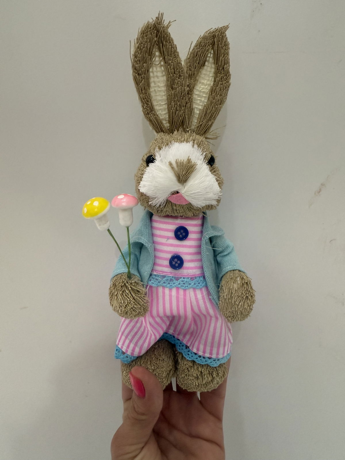 Pascuas Conejo Decorativo 22 cm Modelo saquito celeste y hongos