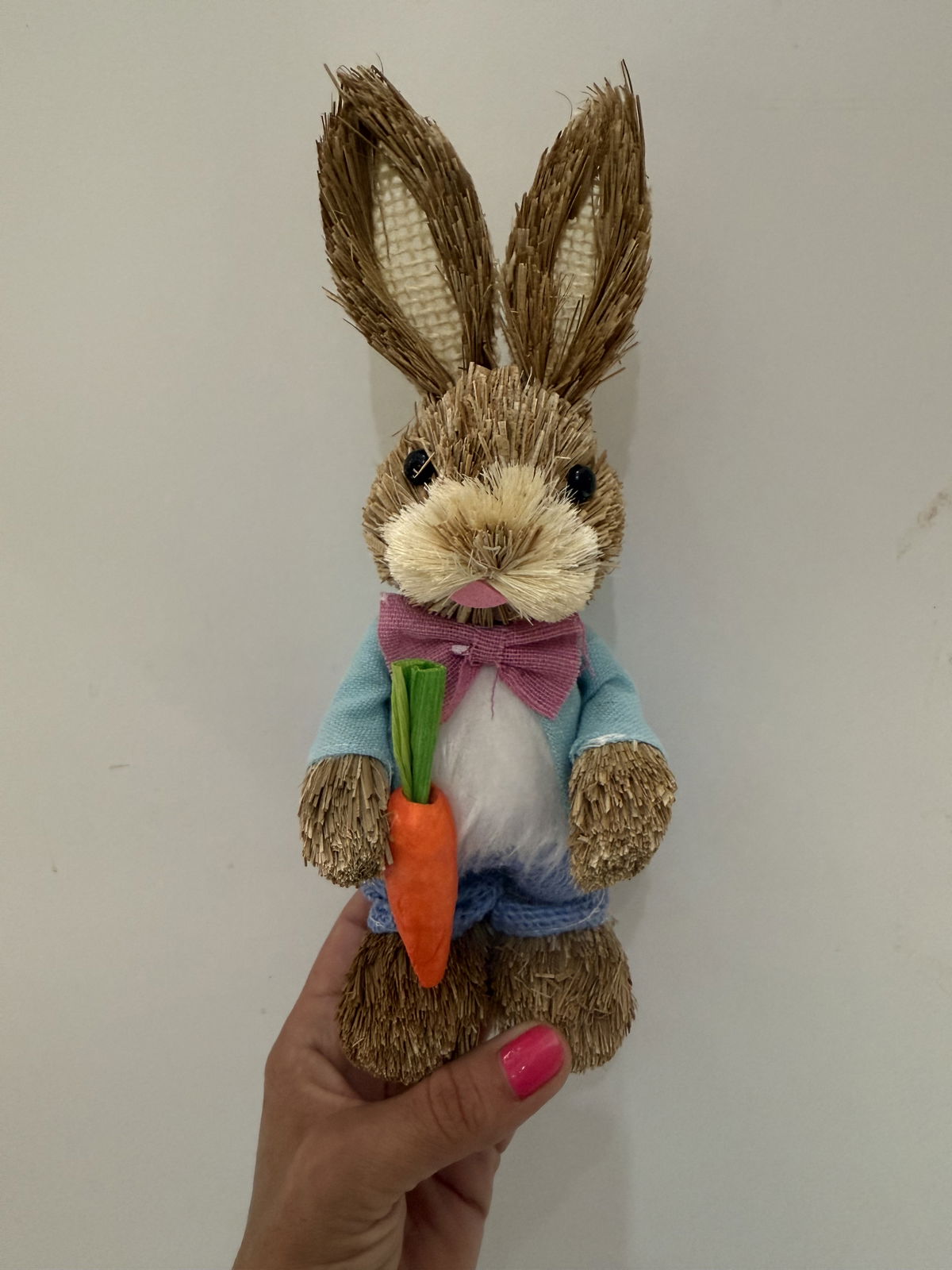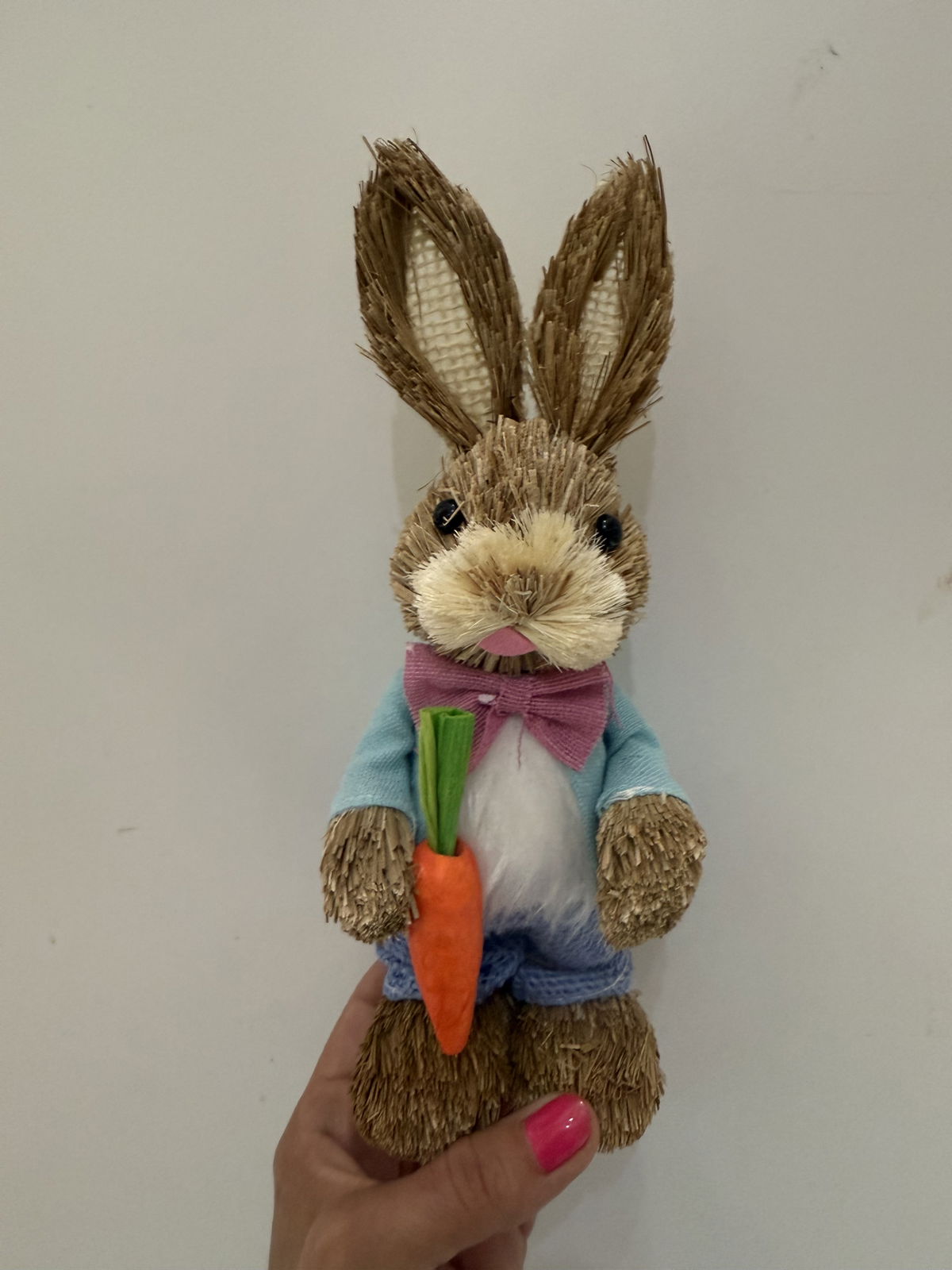 Conejo decorativo de Pascuas , modelo moño rosa y zanahoria.