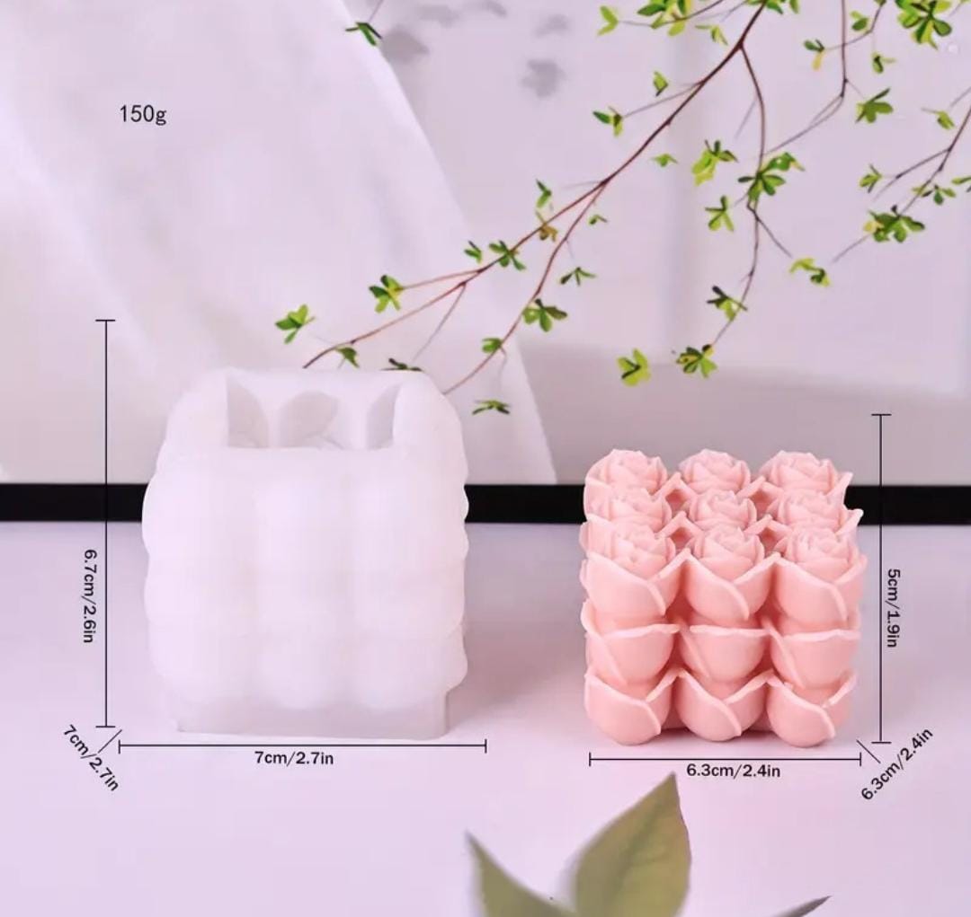 ✅Molde de Silicona Flexible de Rosas apiladas en forma cuadrada .