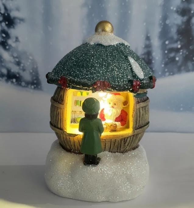 La casita tiene una luz suave generando un ambiente acogedor, es un adorno versátil se adpta a diferentes estilos de decoración.