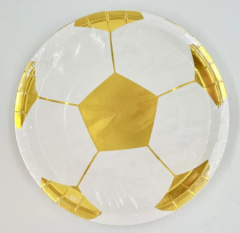 Plato de polipapel x 8 pelo balón dorado unidades por pack, hermosos para la temática de fútbol. Disponibles en 2 tamaños
