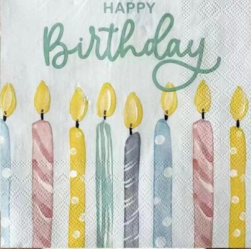 Servilletsa para festejar el Cumple con velitas y fondo celeste pastel.