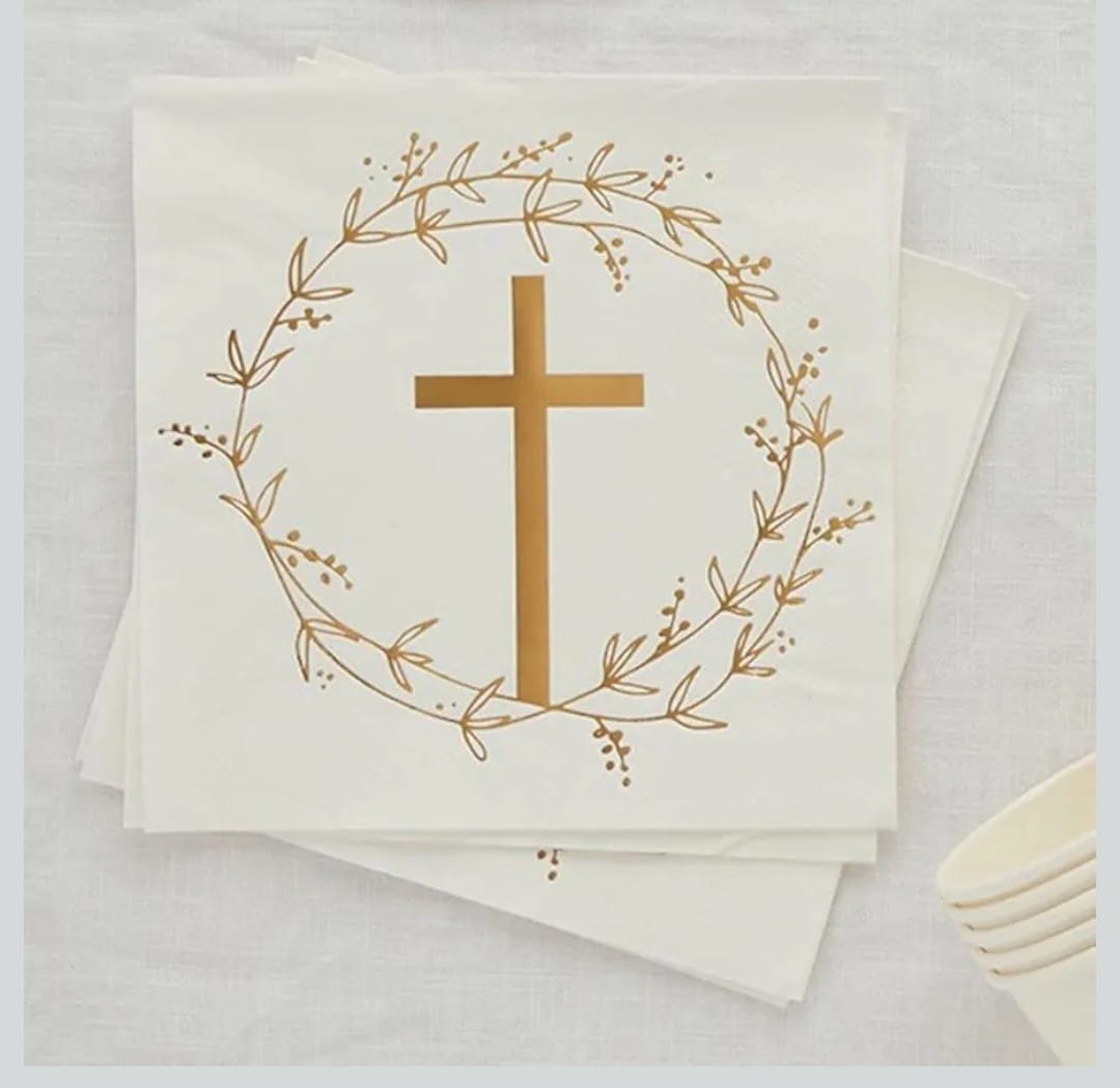 Servilletas para Comunión / BautismoBlancas con Cruz Dorada