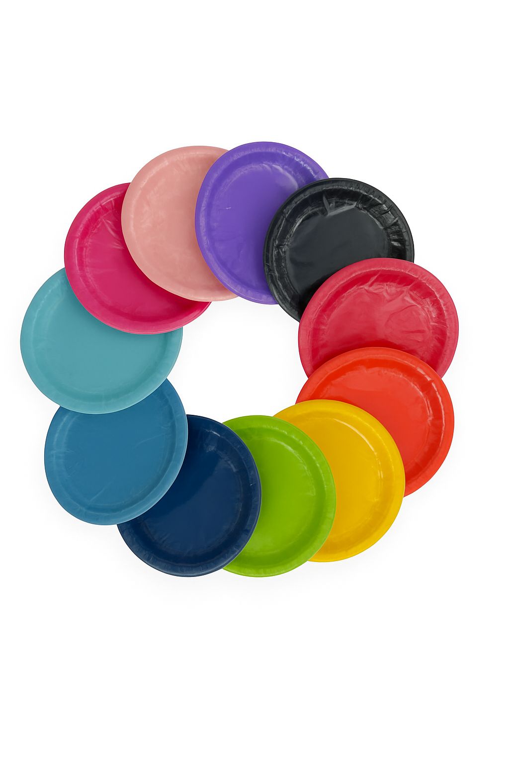 Platos grandes lisos de diferentes colores, miden 18 cm, son ideales para todo tipo de eventos y actividades.
