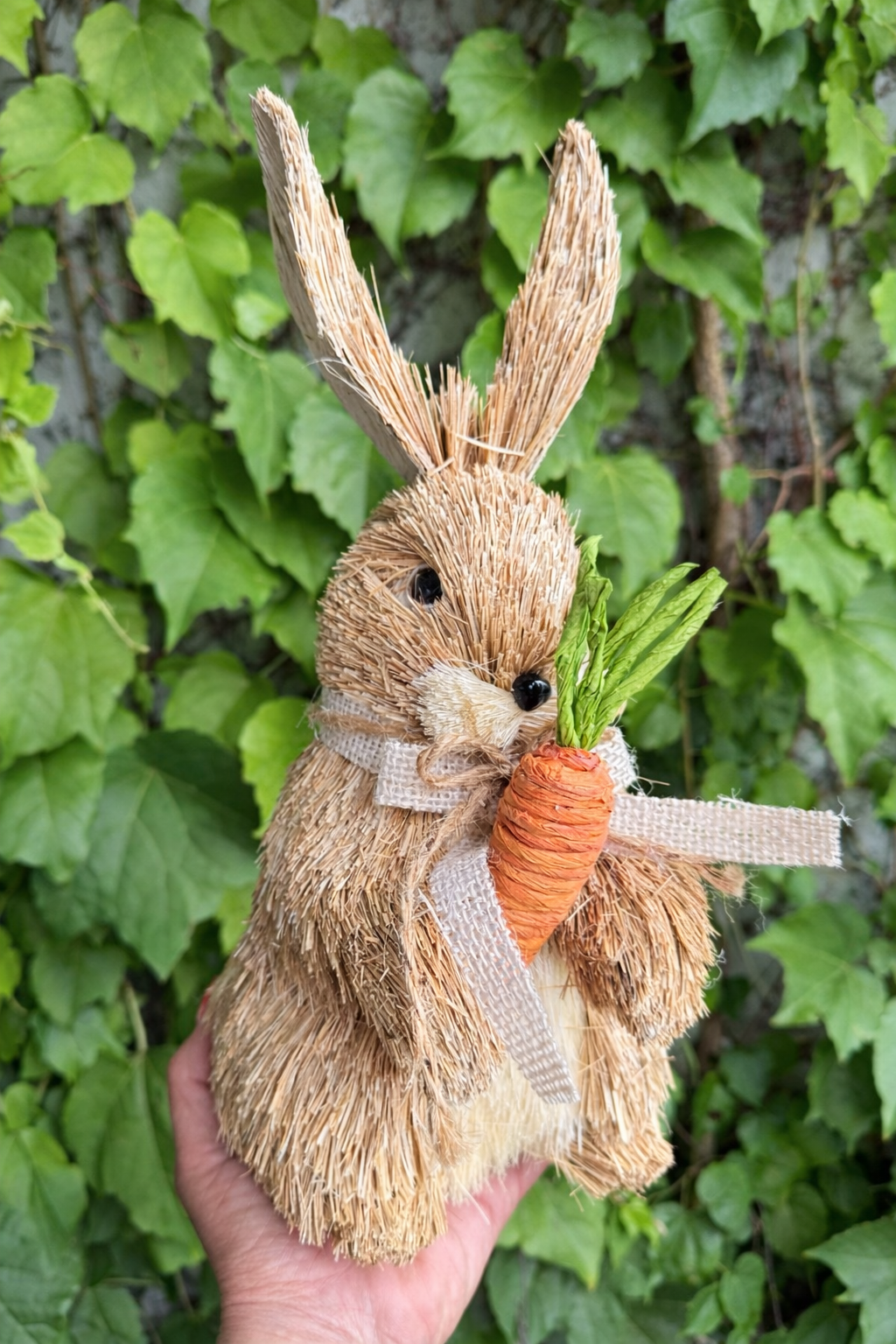 Sumá un detalle cálido y encantador a tu decoración de Pascua con este conejo decorativo de fibra natural 🥕