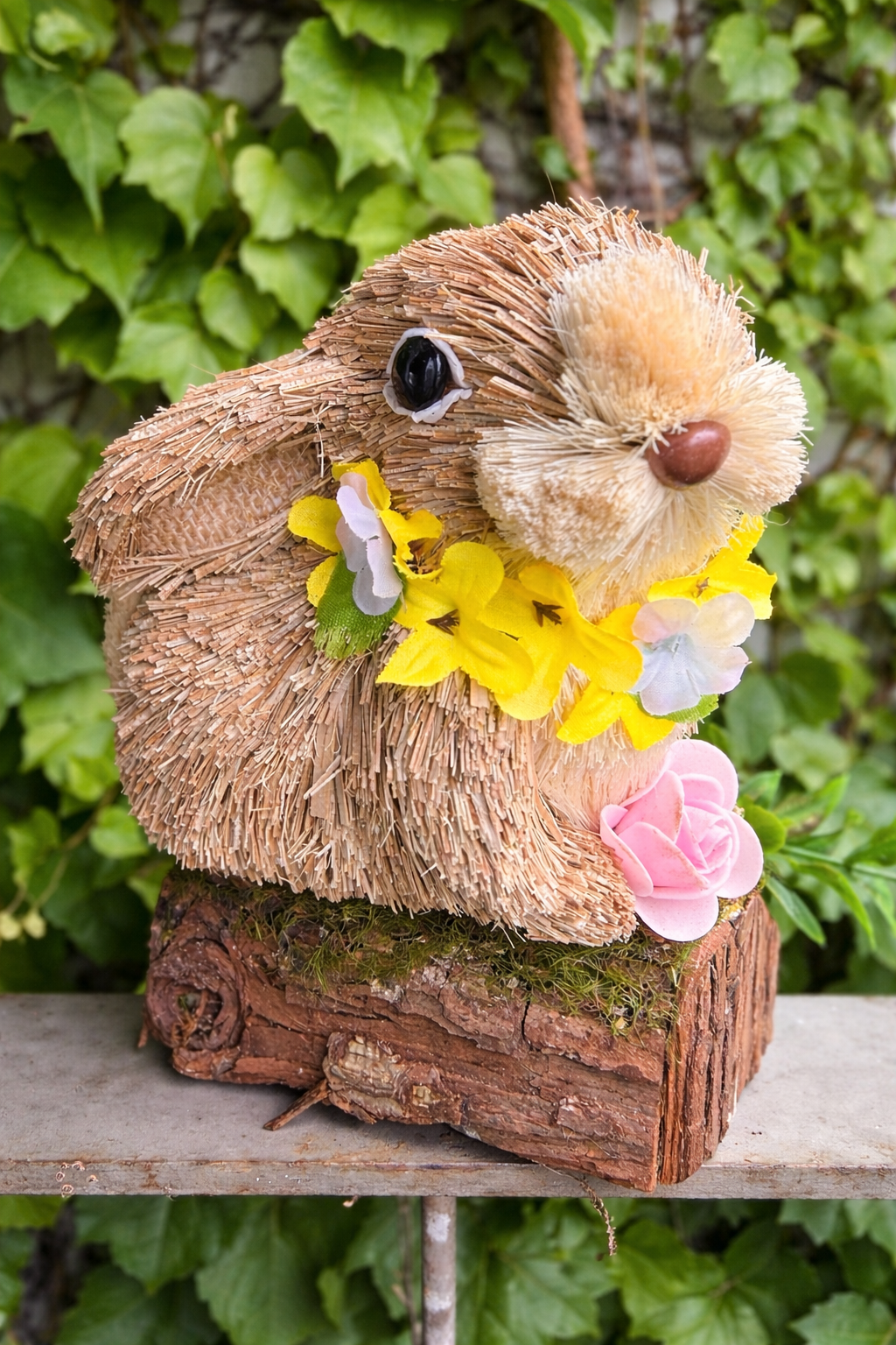 Conejo Decorativo de Fibra Natural con Flores – Pascua