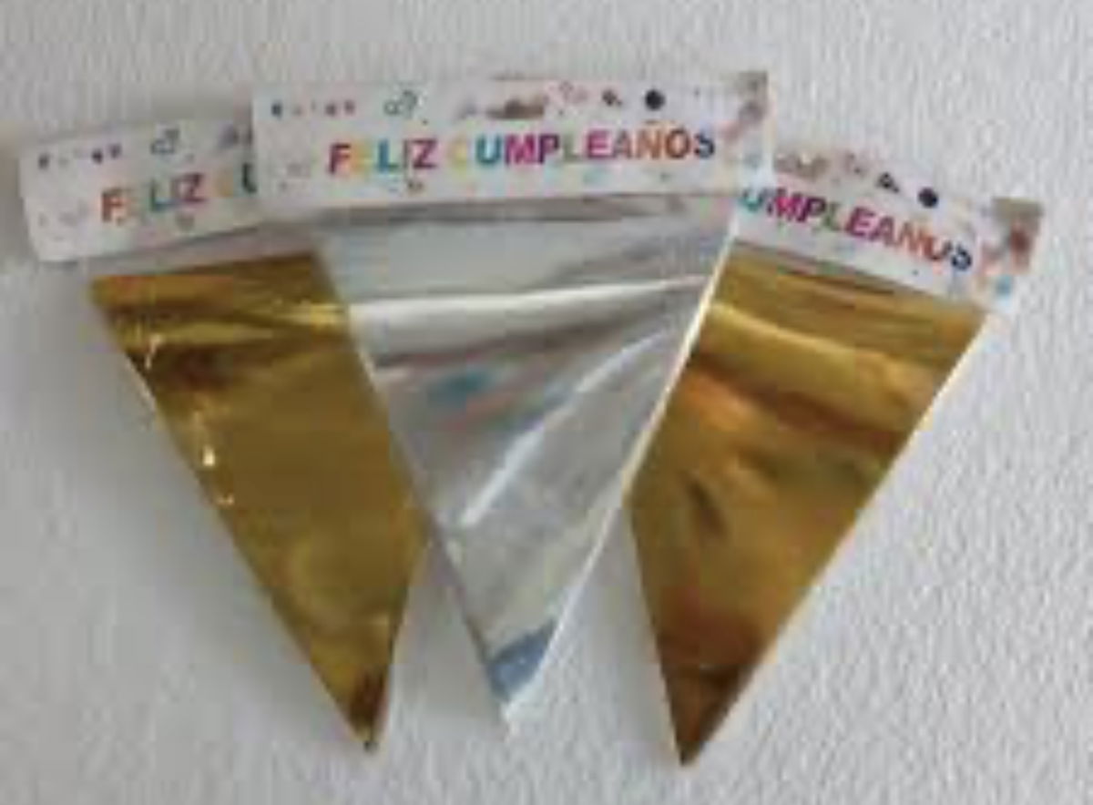 ¡Dale un toque chic y festivo a tu fiesta con estos banderines metalizados! 🌟