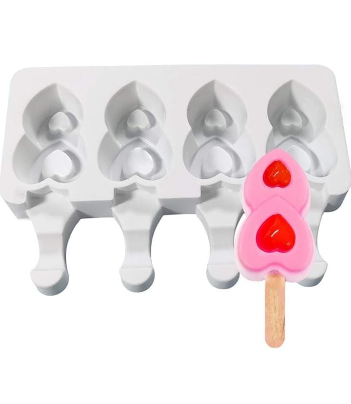 MOLDE SILICONA HELADO CORAZON DOBLE