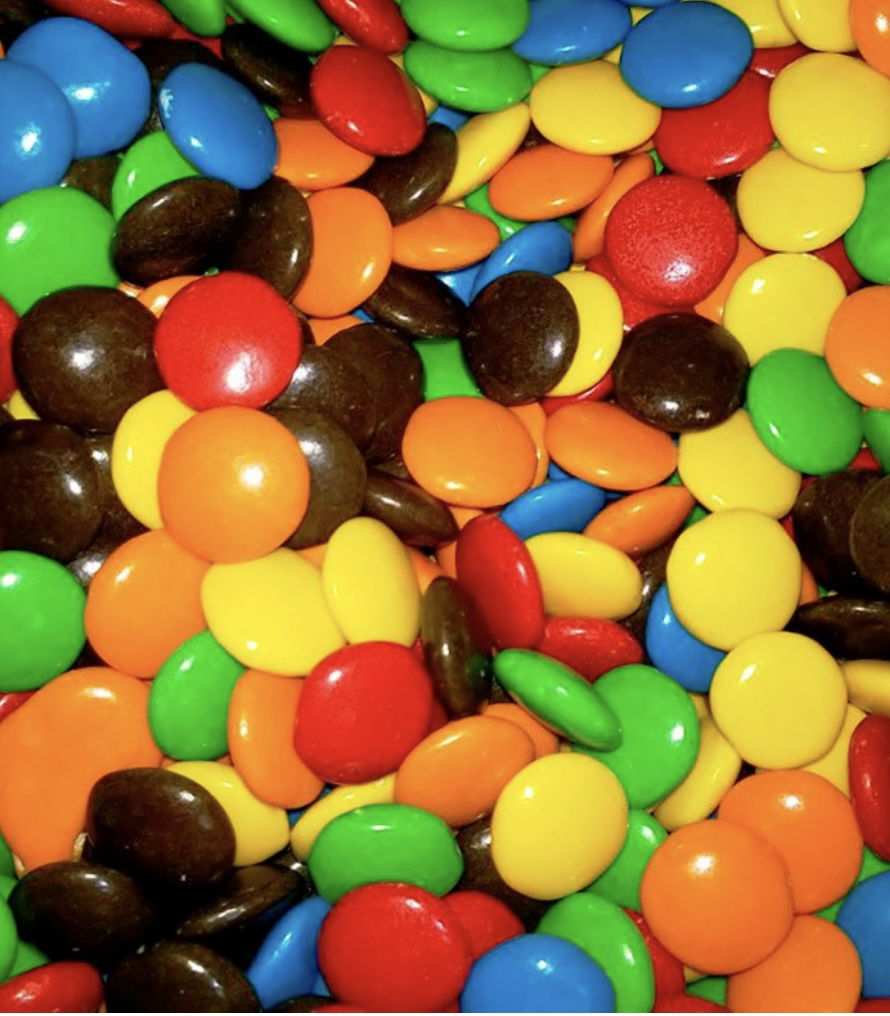 Paquete de 100 gr. de lentejas de chocolate, colores surtidos.