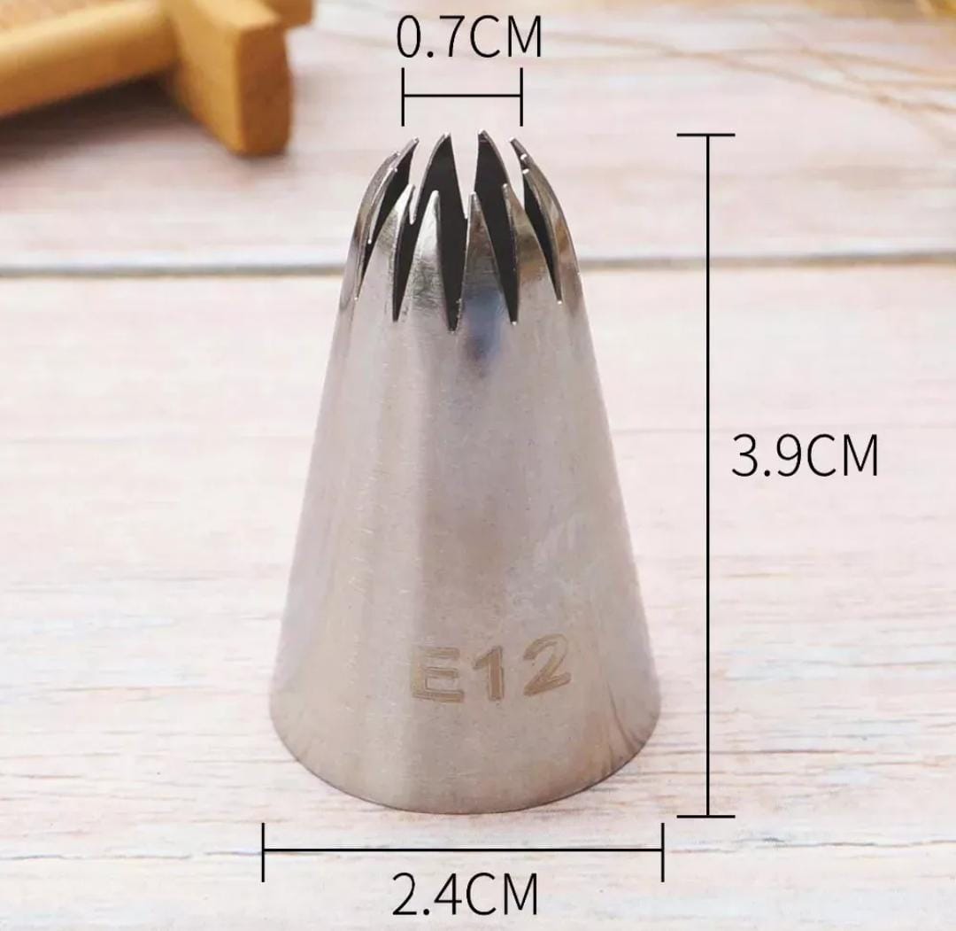 🍥 Boquilla de acero inoxidable E12, ideal para crear decoraciones definidas y voluminosas en tortas, cupcakes y postres.