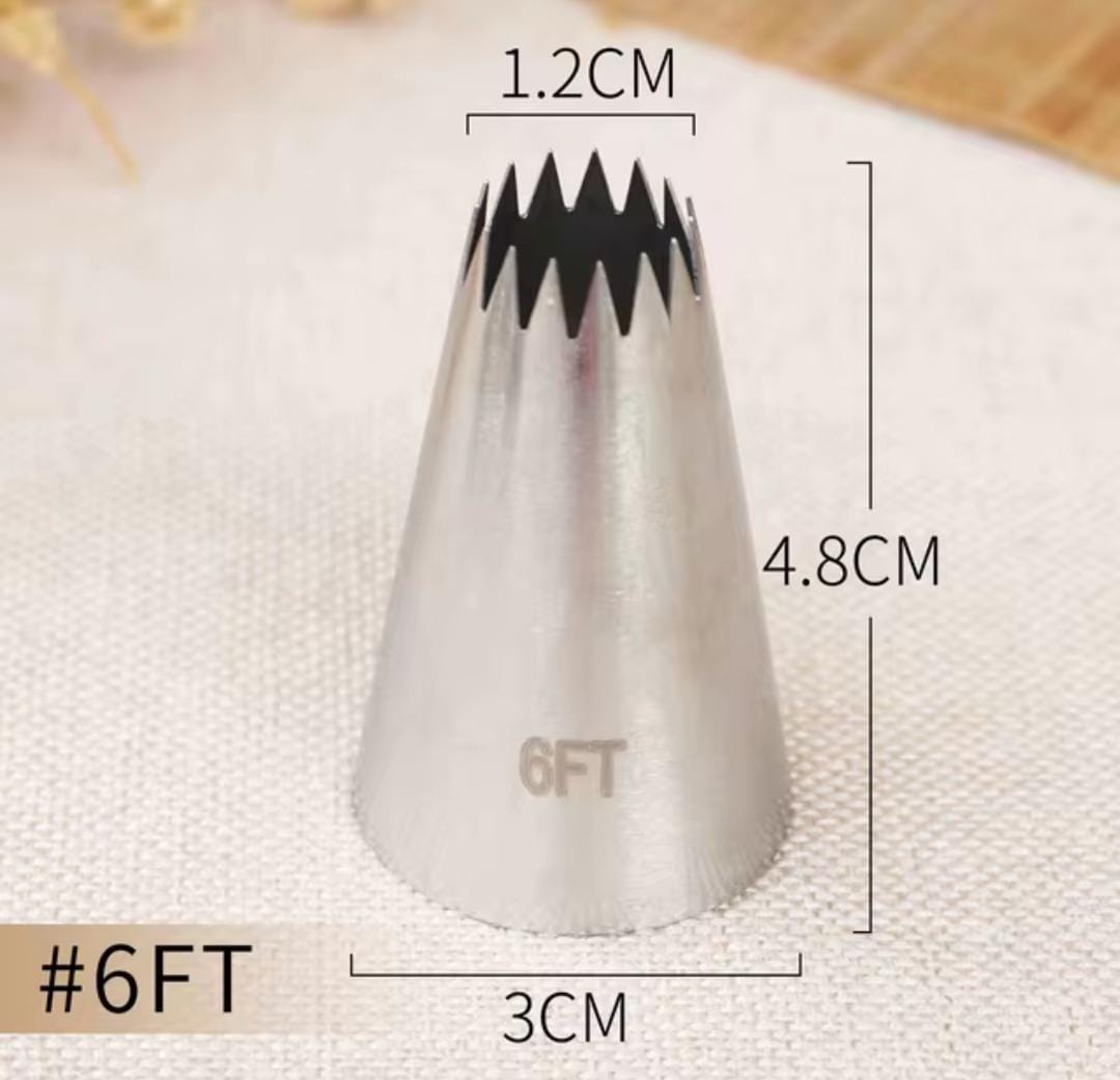 🍥 Boquilla de acero inoxidable 6FT, ideal para crear decoraciones definidas y voluminosas en tortas, cupcakes y postres.