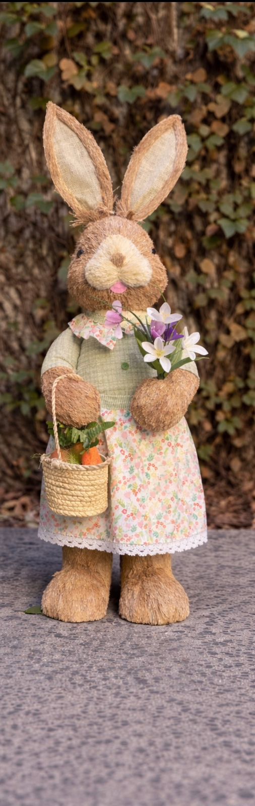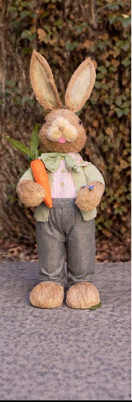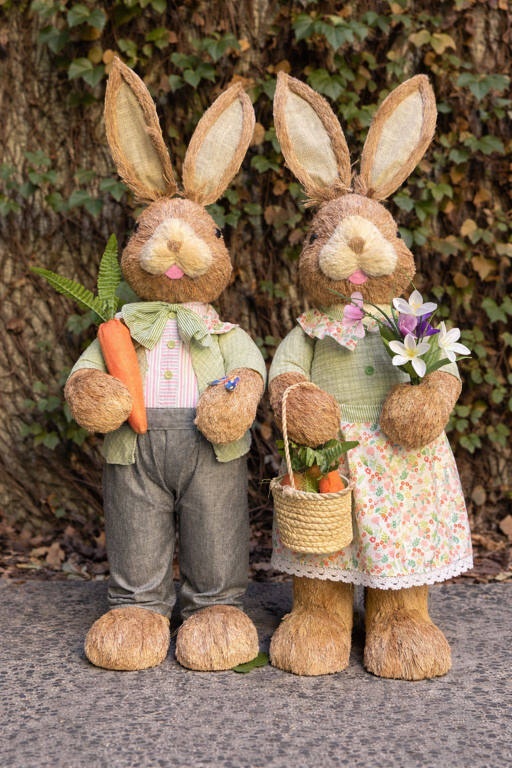 Dale un toque cálido y encantador a tu decoración de Pascua con esta adorable pareja de conejos decorativos. Confeccionados con fibras naturales y detalles textiles, cada conejo tiene un diseño único que transmite ternura y estilo campestre.