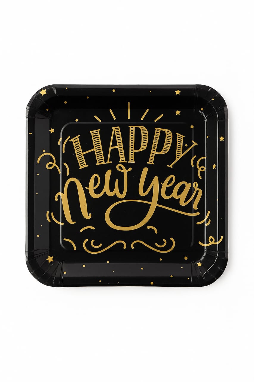 Hermoso plato de polipapel Negro con dorado para festejar EL año nuevo,